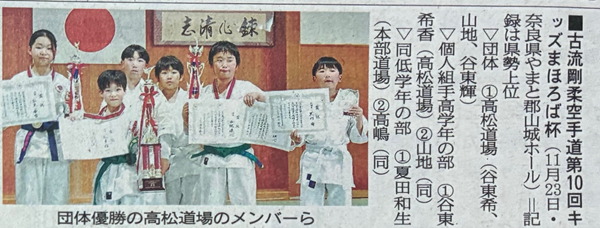ちなみに古流剛柔空手道となっているのは四国新聞の担当者に流派が分かった方がよいとの事で頭につけてもらいました。